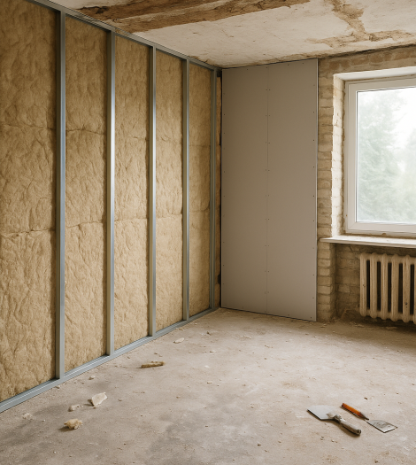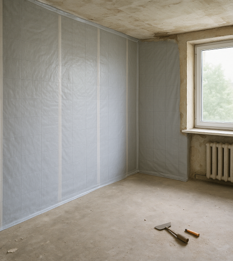 Panneaux isolants thermiques directement collés sur les murs intérieurs. Rapide et économique, parfait pour les logements avec peu de pertes thermiques.